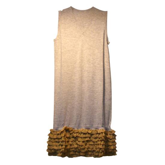 This is a sleeveless dress. It is made of 100% cashmere except the hem part which is made of 100% silk chiffon 8mm.