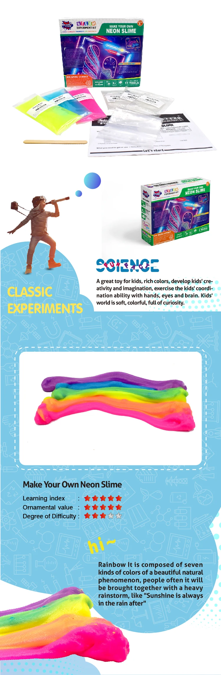 MAKE YOUR OWN SLIMES: The amazing Slimy Kit includes everything kids need to mix and make their own neon and glitter slime! Mix it, stretch it! Create a variety of neon and glitter finishes. Children can play in different ways for a long time, help children develop the ability of crafting and imagination. It is a good idea to keep children away from digital products.