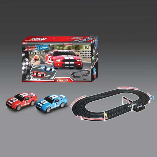 Entertain your kids with this fun slot car set. The set includes 2 race cars and an oval-shaped track. It is suitable for children aged 8 or above.