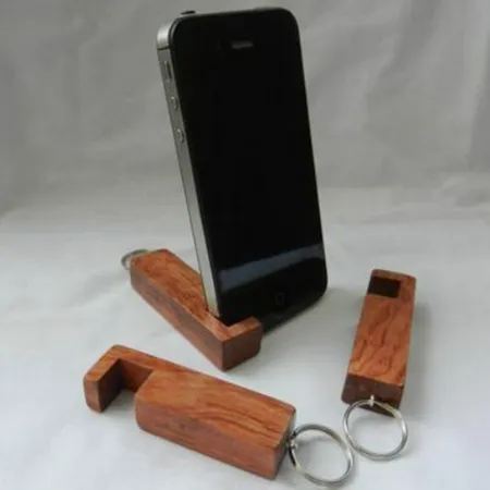 Small Wood Cell Phone Accessories Portable Key Chain Ring Keyring Mini Stand Mobile Phone Holder