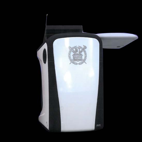 The smart podium in this picture uses the dual monitor system for easy presentation. The lecturer can use this podium to conduct the class with much convenience and effectiveness. It can realize full-automation and security function for lecturers with internal installation of RFID system.