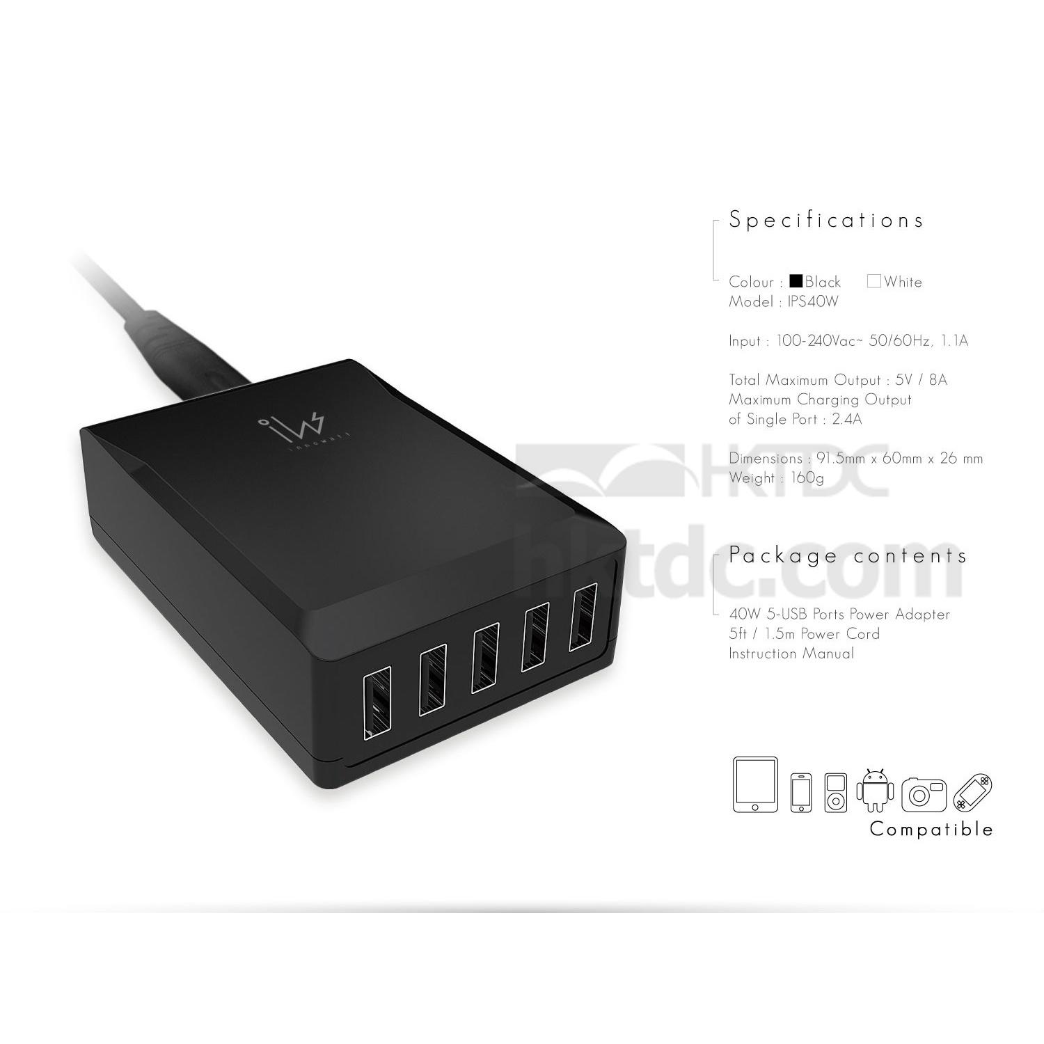 40W of power supply with 5 ports