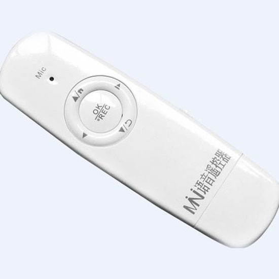 This is a smart voice remote control that supports Android and Windows operating system. It is compatible with smart TVs and PCs. The unit features a durable and slender housing in white with a high-gloss finish.
