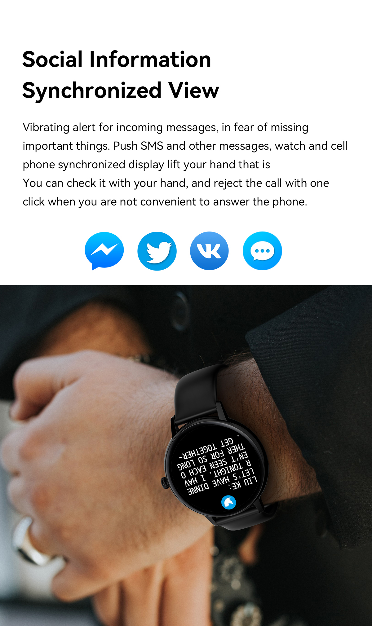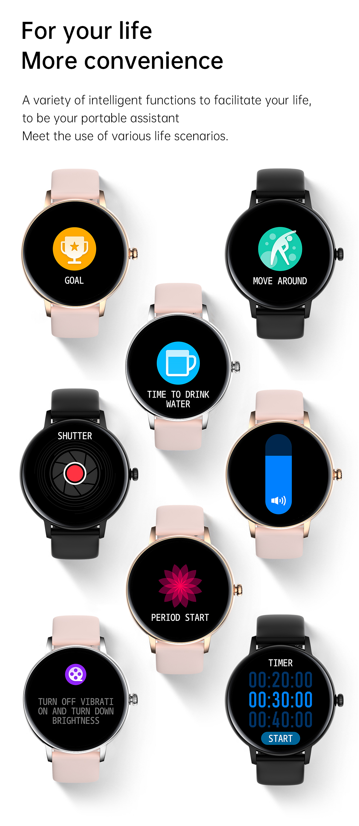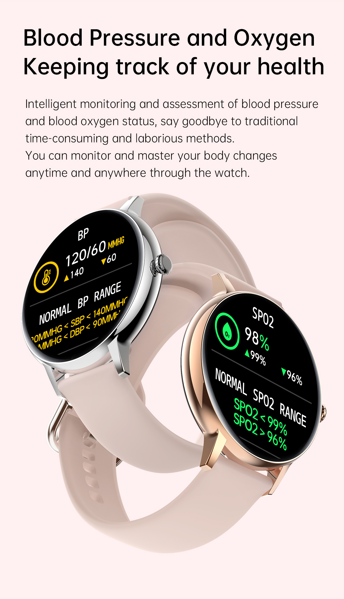 | Basic Functions | Bluetooth calling,Heart rate,Blood Pressure,Blood oxygen,AI Voice ,100+Sport modes,ETC. |