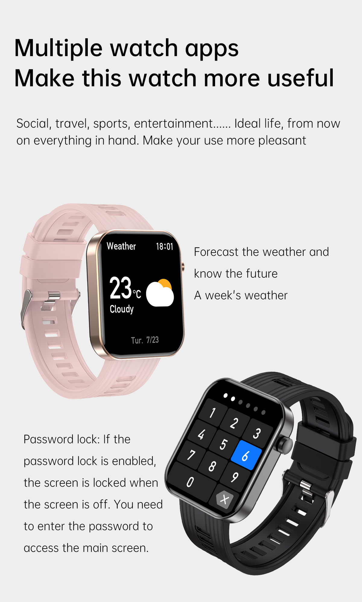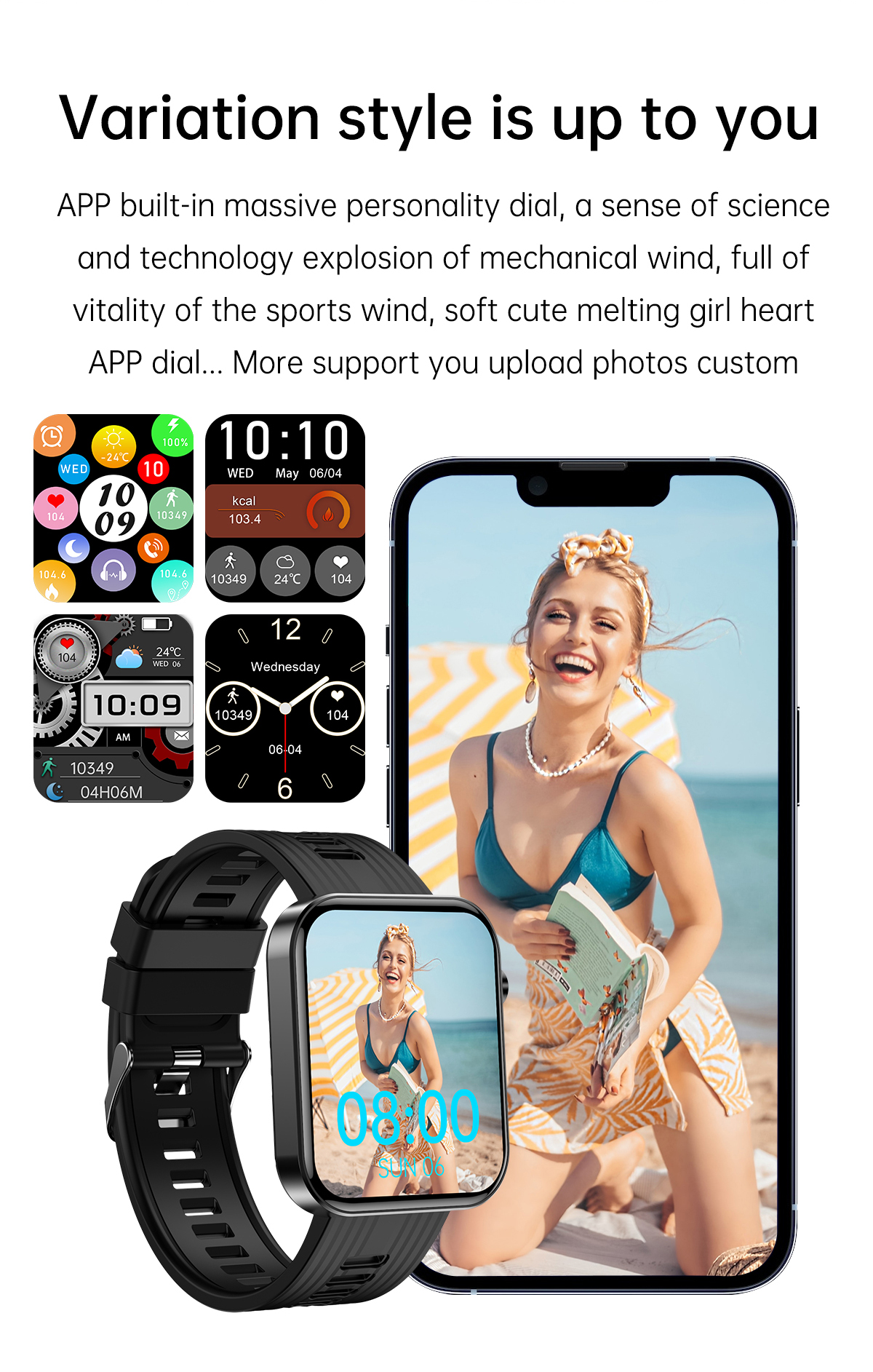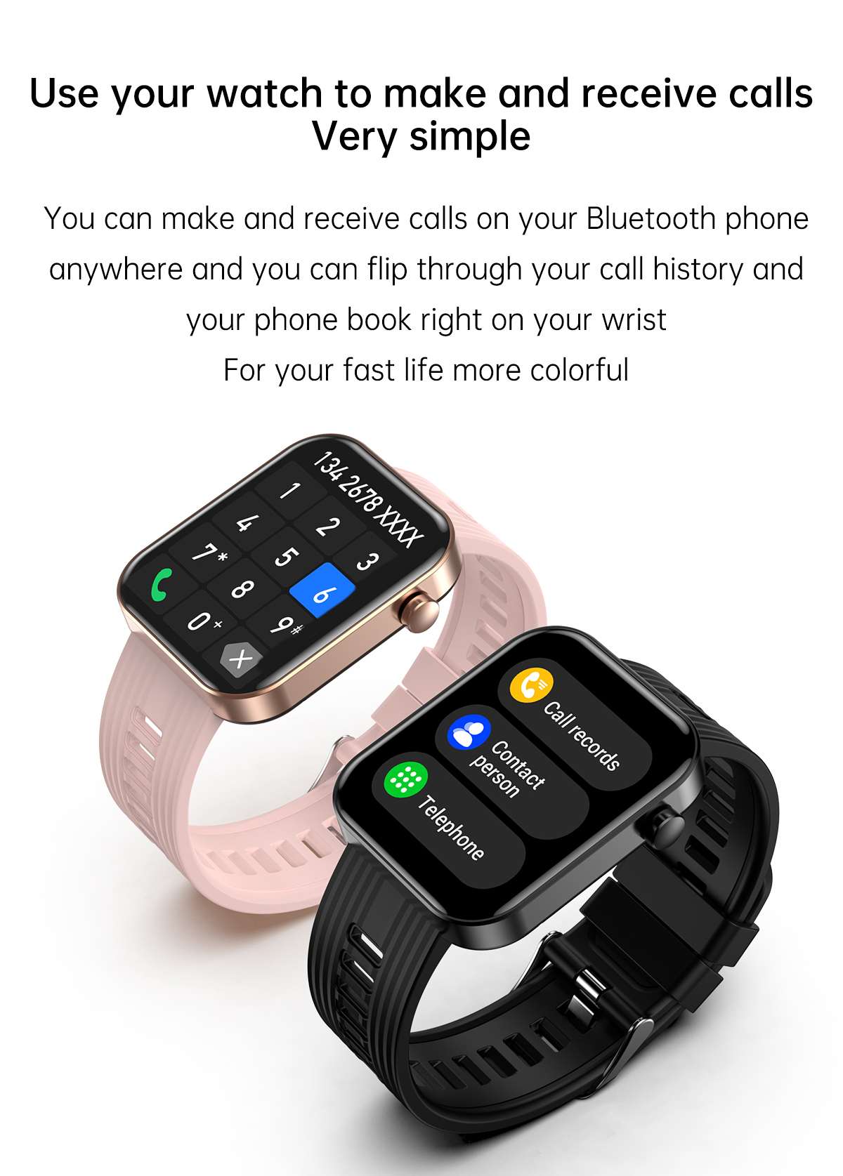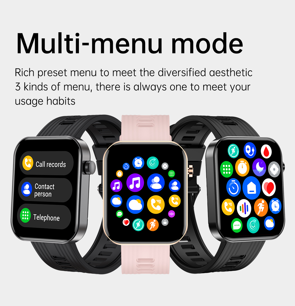 | Basic Functions | Bluetooth calling,Heart rate,Blood Pressure,Blood oxygen,AI Voice ,120+Sport modes,ETC. |