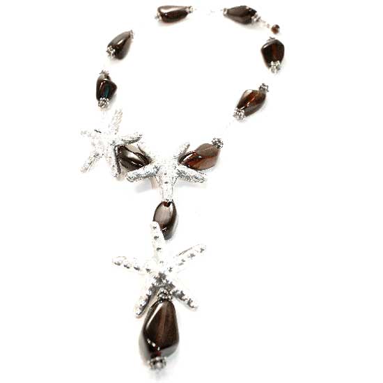 The use of smoky quartz stones exudes an air of mystic and magic. The adornment of 3 white gold plated, individually handcrafted starfish brings a fun-loving and stylish vibe. It would inevitably be the center of attention and a definite head-turner.