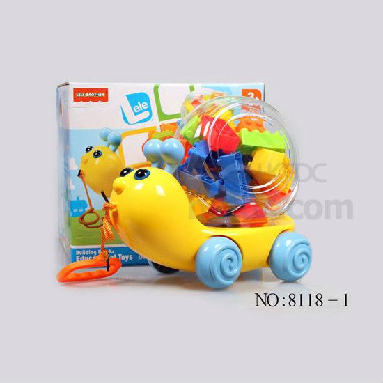 With 30-40pcs brightly painted building blocks and instruction for building, packed in lovely snail shape