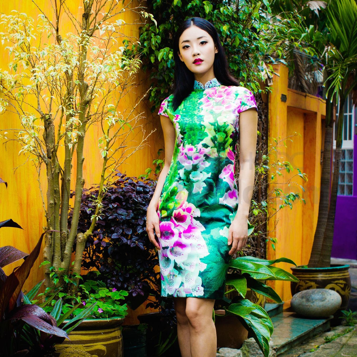 Snapdragons Print Silk Qipao/Cheongsam/Dress
