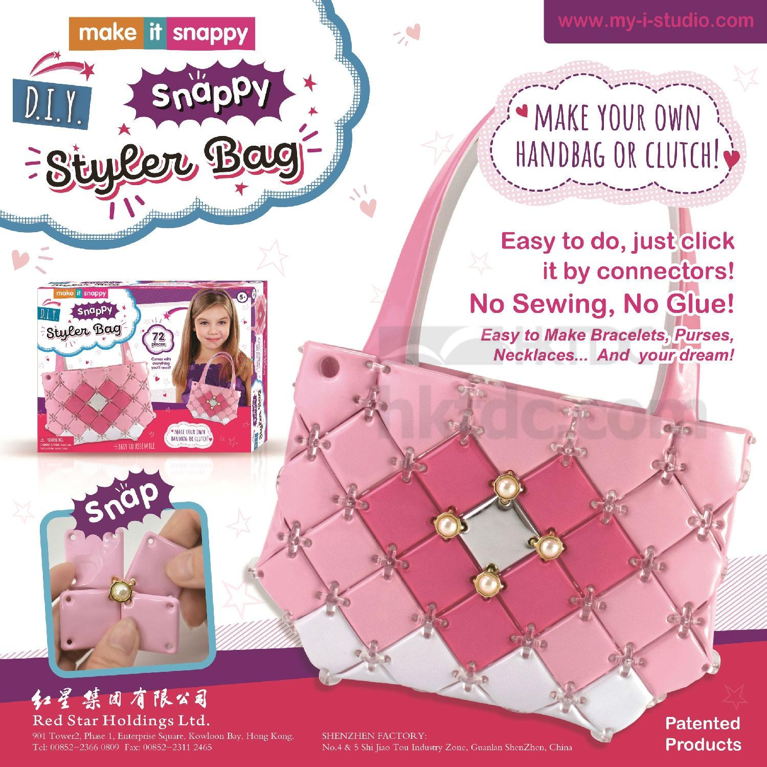 - Kids can snap the pieces together to form their DIY handbags, wallets, necklaces and more.