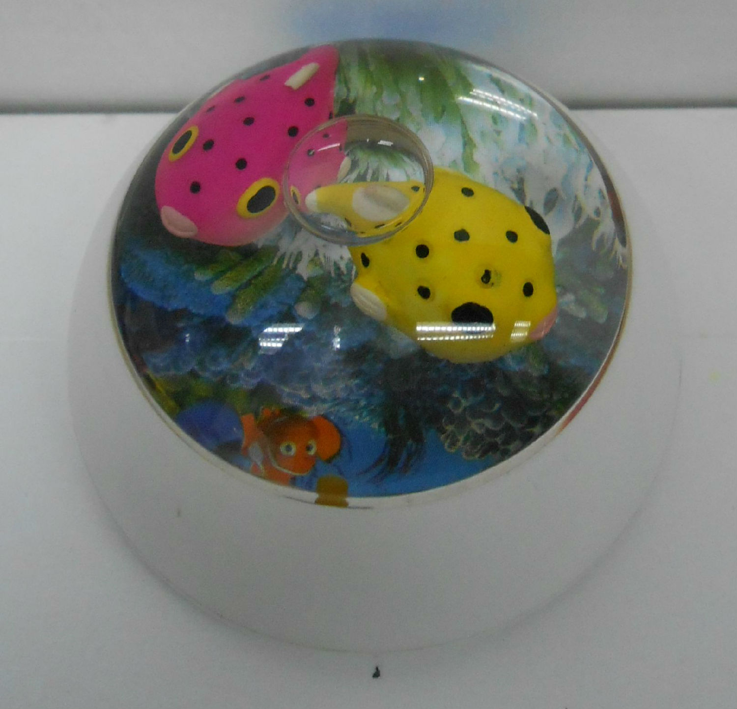 With fishes inside, polystone base, acrylic globe, magnetic base