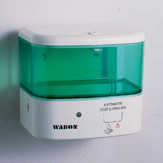Photographed is a soap dispenser that is equipped with a motion sensor for automatic operation. The wall-mount design makes this dispenser perfect to be used in a toilet. This convenient soap dispenser is the key of maintaining a healthy household.