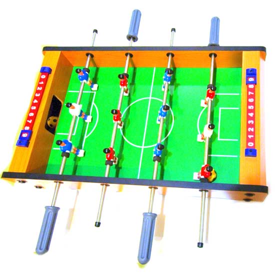 This soccer table goes with rotational rods with easy-to-grip handles to control the play on the field. Featuring colorful graphics and painted players to add a realistic feel, this game table provides hours and hours of family fun by providing soccer excitement.