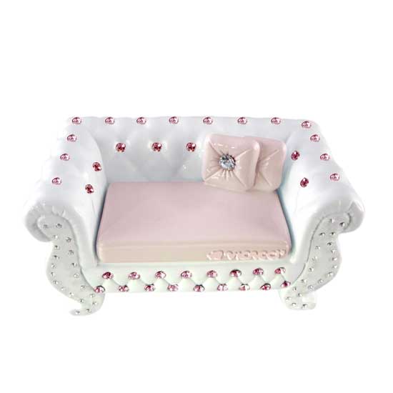 This unique decoration is designed in a vivid and elegant sofa shape. It is made of quality polyresin in white and pink, and meticulously decorated with sparkling Swarovski crystals for a deluxe appearance. This beautiful piece surely is a great gift choice for your friends and family.