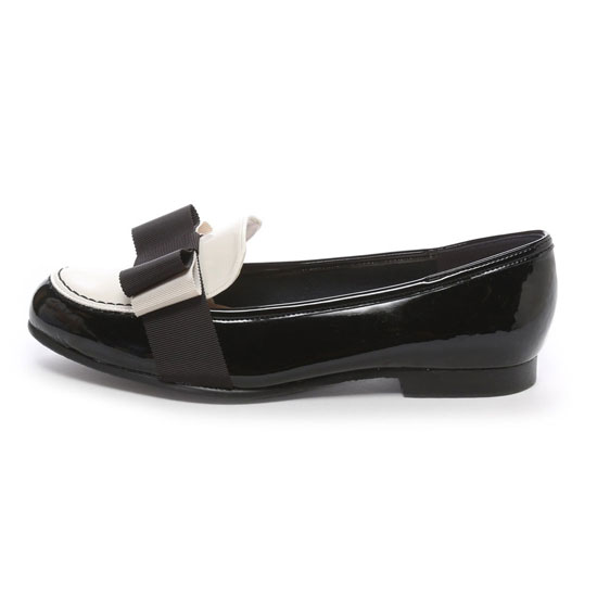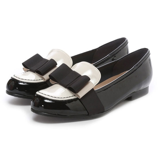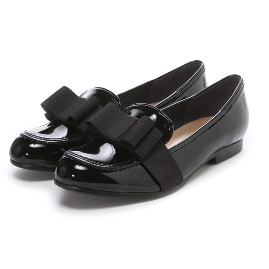 This is a pair of soft enamel ribbon loafers with a stylish design. The loafers are finely made for a comfortable touch. This pair of waterproof loafers is a great choice for fashionable ladies.