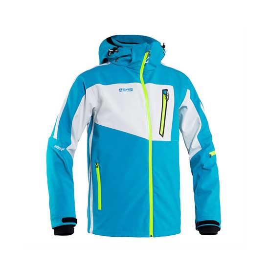 This showcased jacket comes with a soft shell for a comfortable fit. It features long sleeves, a zip closure, a left chest pocket, two side pockets and a functional hood. This soft shell jacket is designed in attractive colors for an eye-catching look.