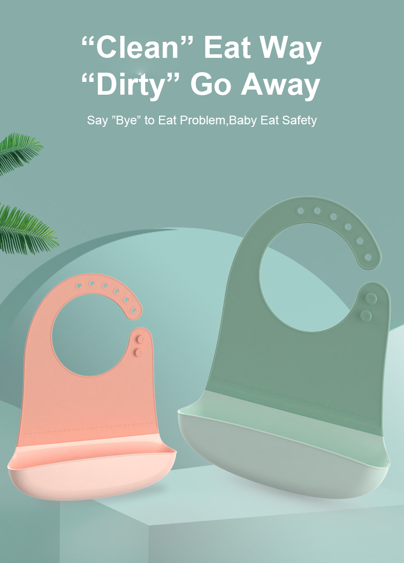 Soft Stain Resistant Silicone Baby Bib Durable Waterproof Feeding Bibs Upgraded Neck Strap and Adjustable Bib