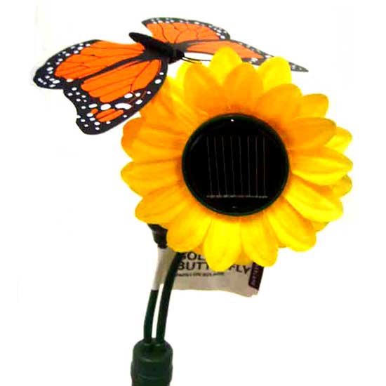 Displayed here is a floral decoration with a built-in solar panel. The butterfly shakes its wings under sunshine. The eye-catching appearance makes it stand out from the rest.