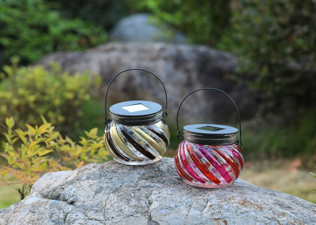 This LED light comes in a glass jar design and has a solar panel on top for power supply. It is equipped with a white LED light source and provides comfortable illumination. With a handle on top, this solar LED light is convenient to carry and hang.