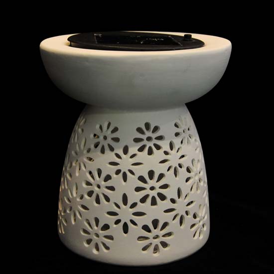 The solar light flaunts a sophisticated design with delicate floral cutout details. The ceramic construction offers added elegance and class. This graceful solar light makes a decent gift idea.