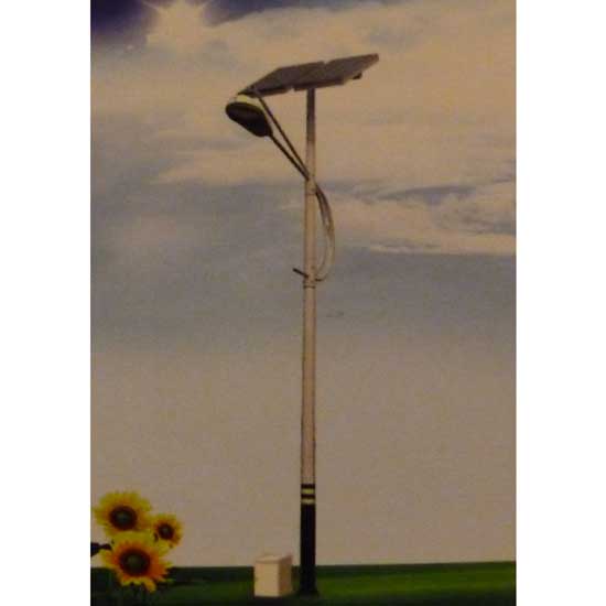 This solar streetlight consists of a solar panel, a lamp, a control box and a light pole. The solar panel features adjustable inclination angles to reach its maximum efficiency. This solar street light offers an energy-saving solution for street illumination.