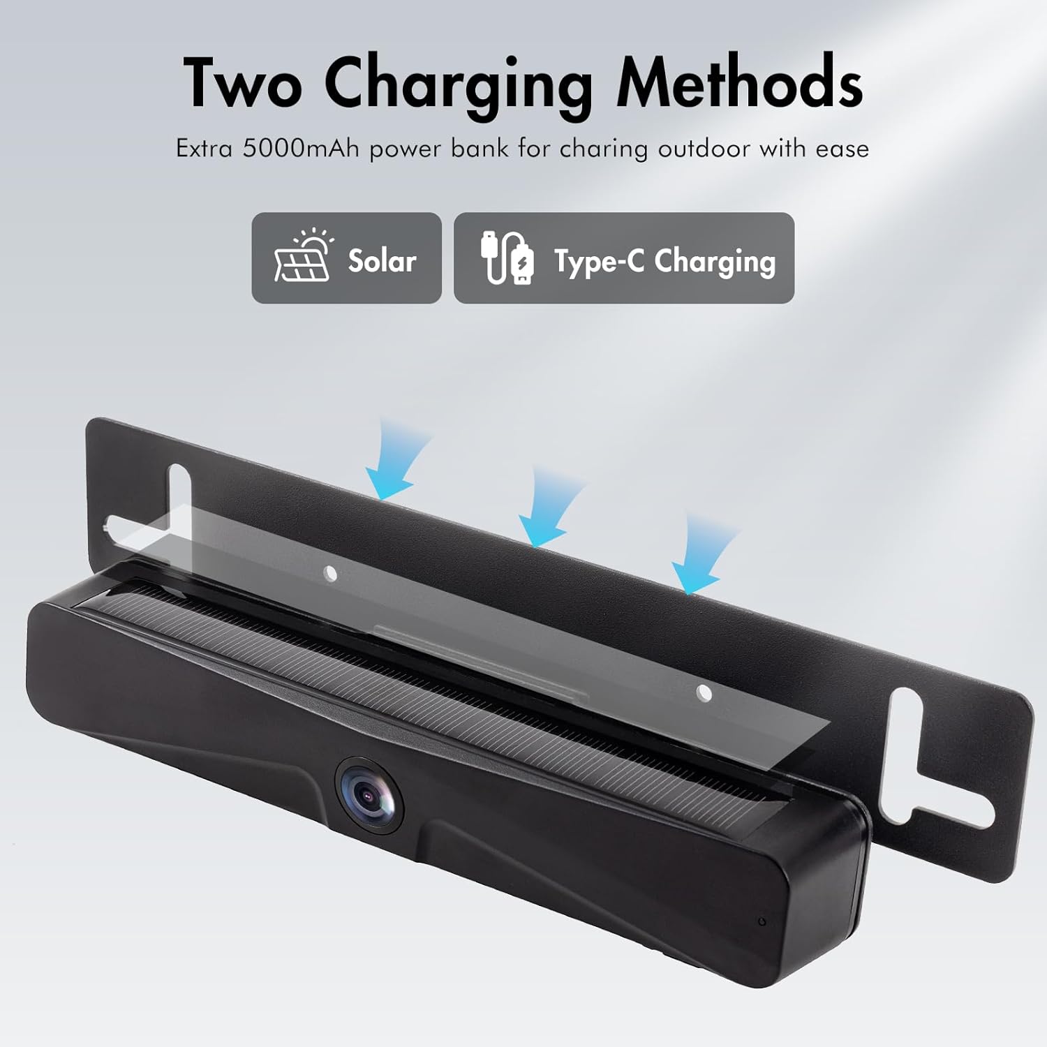 【Solar Rechargeable Camera】 WiFi portable RV backup camera powered by rechargeable 5000mAh lithium ion built-in battery. The battery is easily charged with the USB power cable. Plus, we provide a 5000mAh power bank as extra accessary, making the charging with ease. In the sunny day, the solar panel will help to charge more efficient and quick.