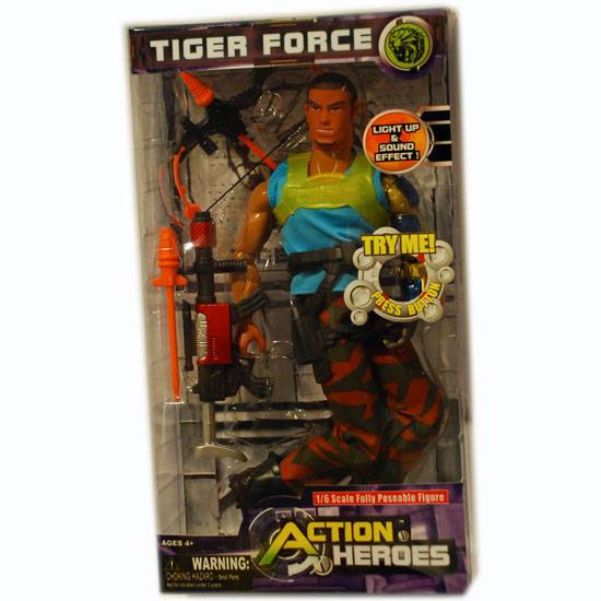 This soldier action figurine set features movable joints allowing different postures. The set includes weapons like arrows and guns for extra fun in making the postures. The figurine also features a sound and light button. This item makes a good piece of toys.