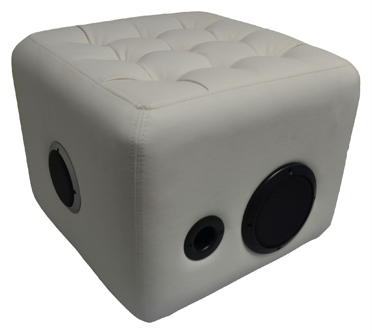 SOUNDCUBE WITH 2.1 CH SPEAKER SYSTEM with Volume control, On/off switch and Audio Jack. Can play music frombiPhone, iPod, iPad, smart phone and all music devices with BLUETOOTH connectivity. FREE MOVING sound CUBE WITH SOFT FINISHING. Can use as leg rest or Ottoman