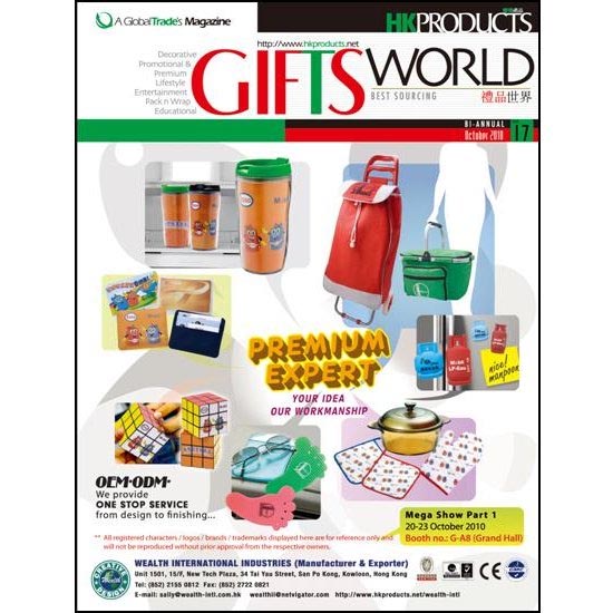 The gift and premium sourcing magazine includes color-printed articles and advertisements. Updated suppliers' information can cater to suppliers and buyers' interests in gifts and premium. This GlobalTrade's magazine is the best sourcing guide for gifts and premium.