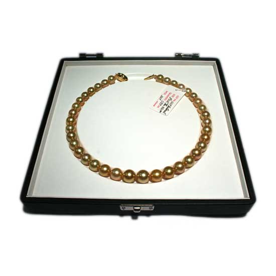 This is a south sea pearl necklace featuring golden pearls. The rare golden pearls exude a sense of elegance. The pearl necklace adds an artistic flavor to different types of outfits.
