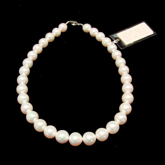 This dainty pearl necklace is precisely arranged with 33 pieces of South Sea pearls. These AAA South Sea pearls are well polished maximum luster. This South Sea pearl necklace is ideal for pairing with elegant outfits.