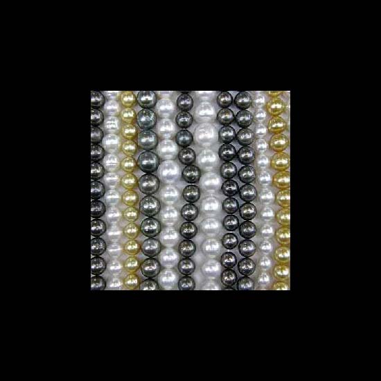 Opaque round South Sea pearls are in natural multi-color of white, gold, black and gray