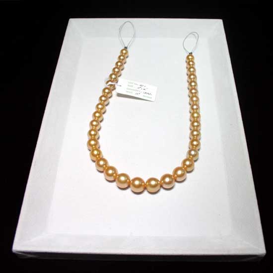This strand of south sea pearls boast consistent round shape and color for a sense of balanced beauty. The stunning golden color makes them distinctive from white pearls. Priced for their high luster, these south sea pearls are ravishing pieces of jewelry for ladies of different ages. These valuable south sea pearls are remarkable for the manufacturing of necklaces, earrings, bracelets, etc.