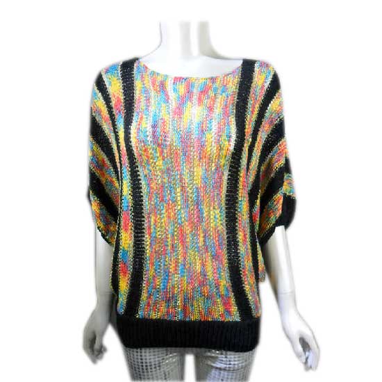 This ladies’ pullover features a space-dyed melange design in assorted colors with a touch of uniqueness. The wide scoop neck and bat-wing sleeves lend an extra sense of vogue. This chic knitwear is finished with a black ribbed hem.