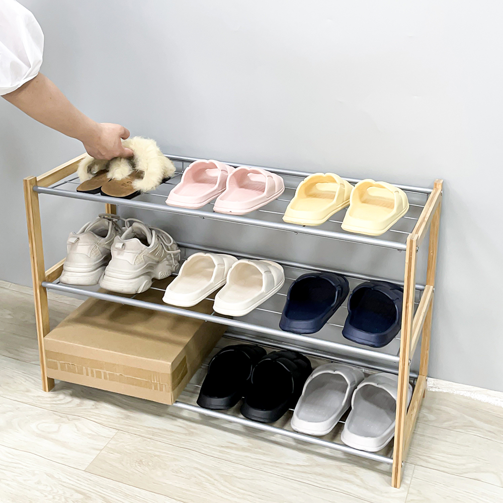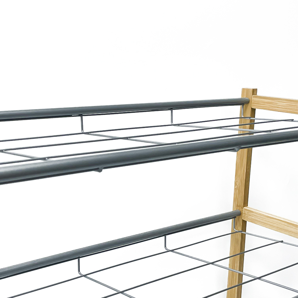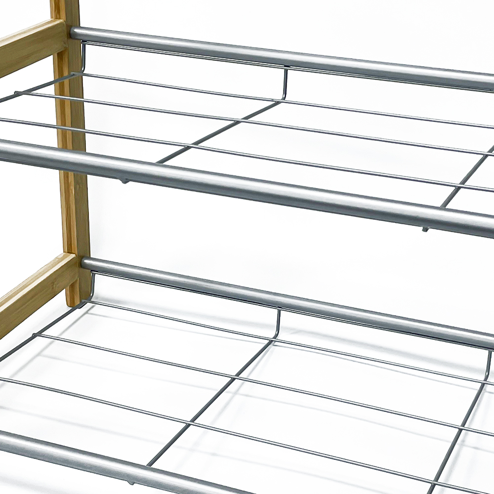 This versatile shoe organizer combines the bamboo with the durability of heavy-duty metal tubes. Designed for modern homes and compact living spaces, it offers a customized storage solution that grows with your shoe collection.
