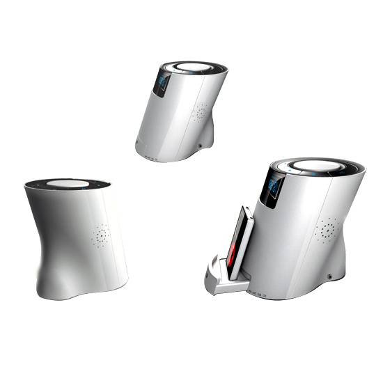 This is a speaker for IPod. The outer shell is made with CMF color material. It features a trendy mechanical design.