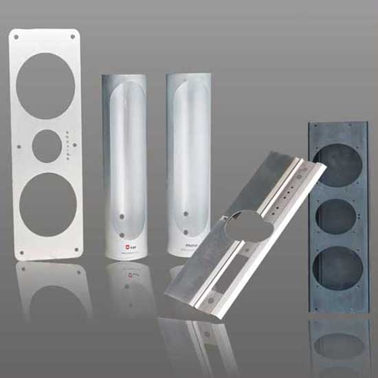 Featured is an aluminum-alloy casing for audio products. The aluminum-alloy structure is exceptionally sturdy and durable. The casing comes with nice details to suit different styles of column speakers.