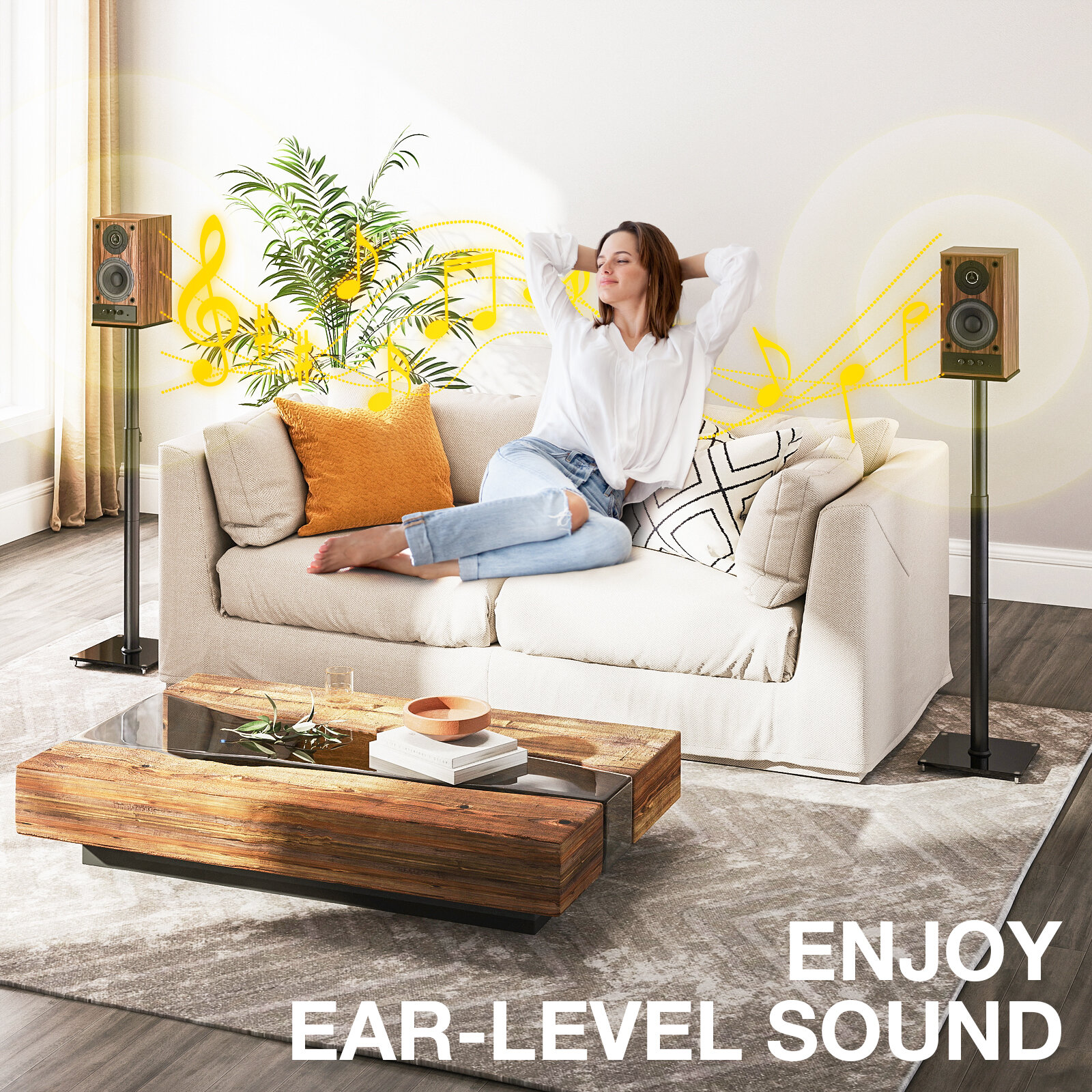 Adjustable: Easy height adjustment for optimal sound direction.