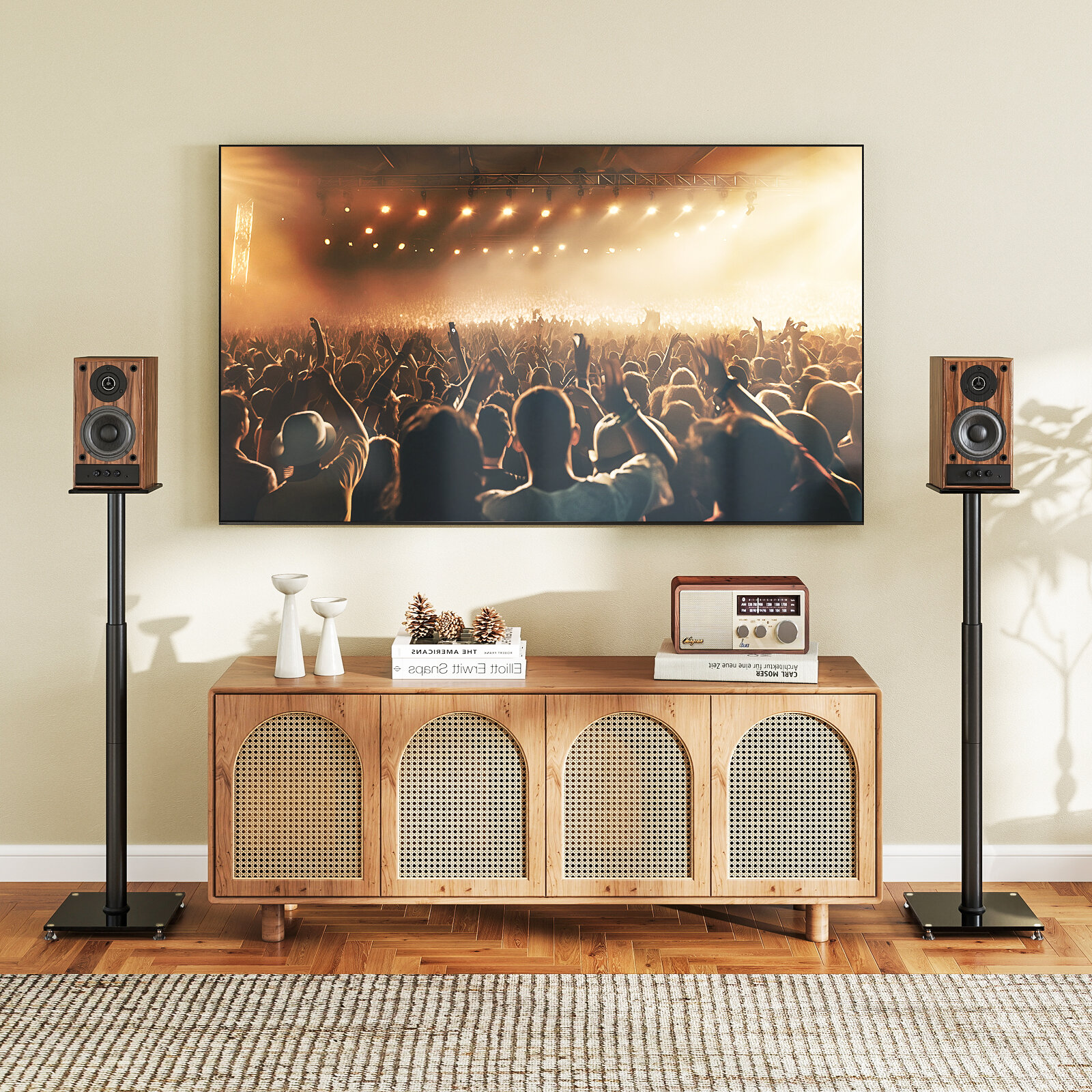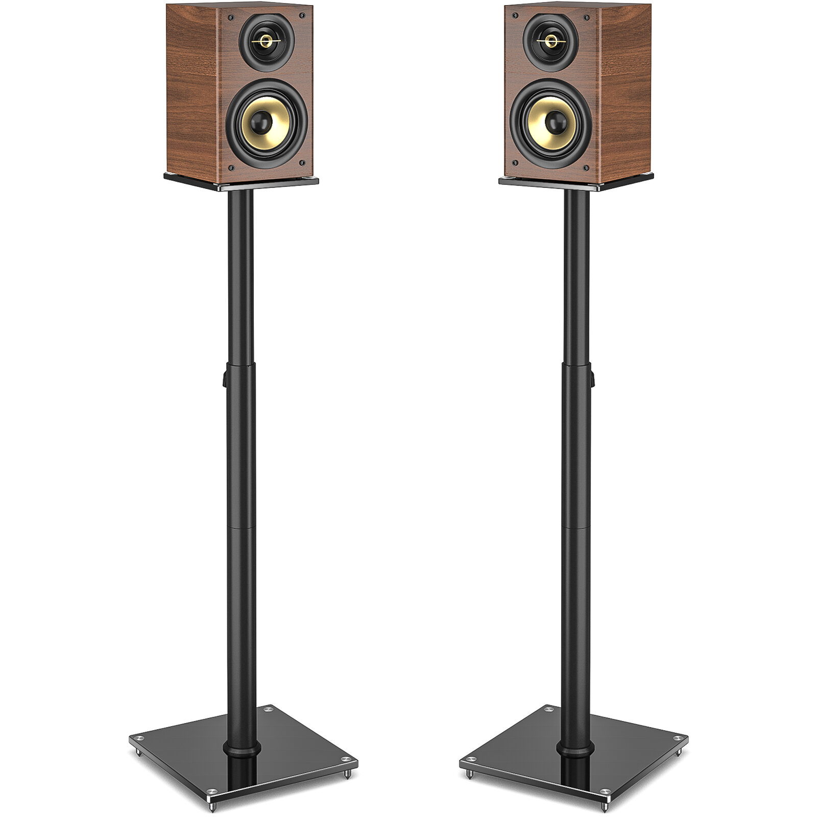 Sturdy: Glass base for stable speaker support, reducing vibrations.