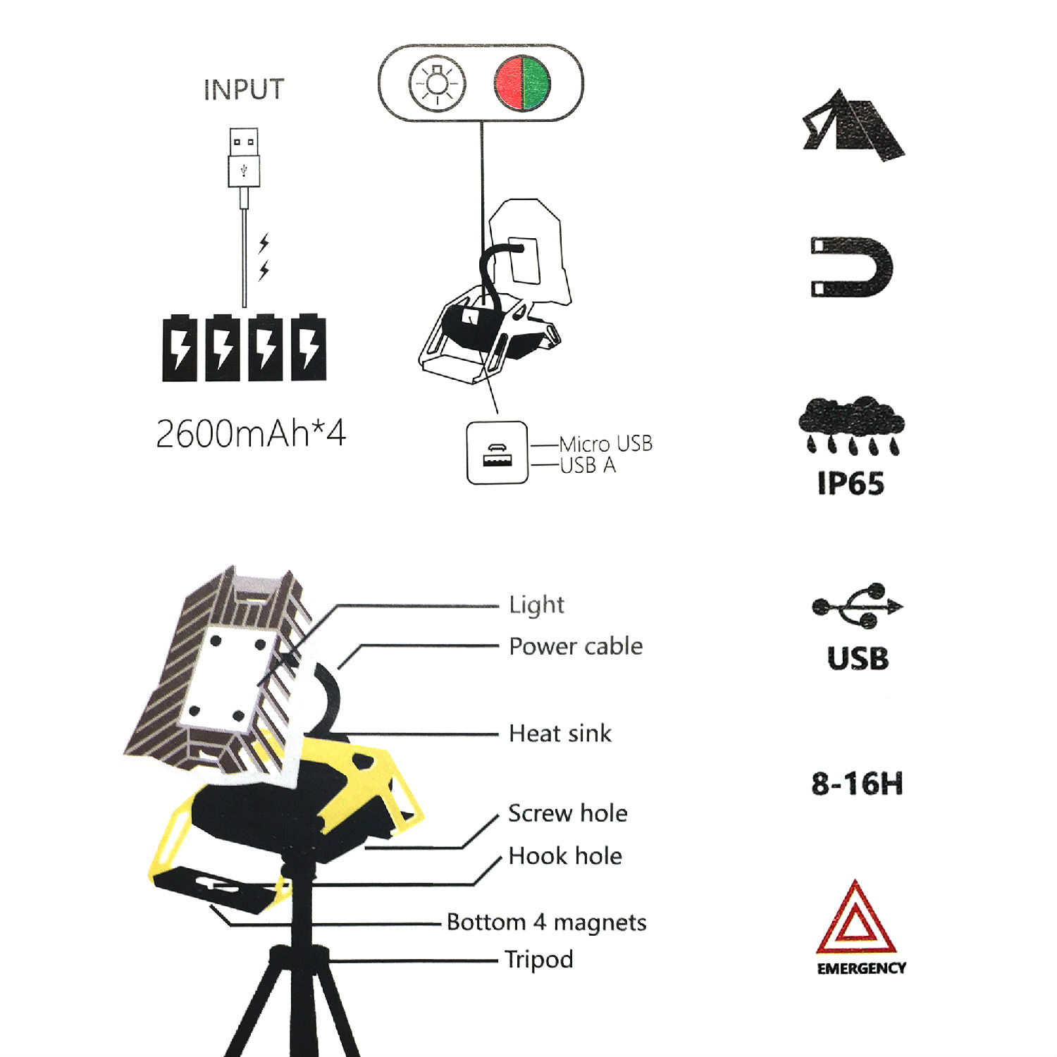 Working Time: Strong light for 8 hours, lower light for 12 hours, flash light for 18 hours