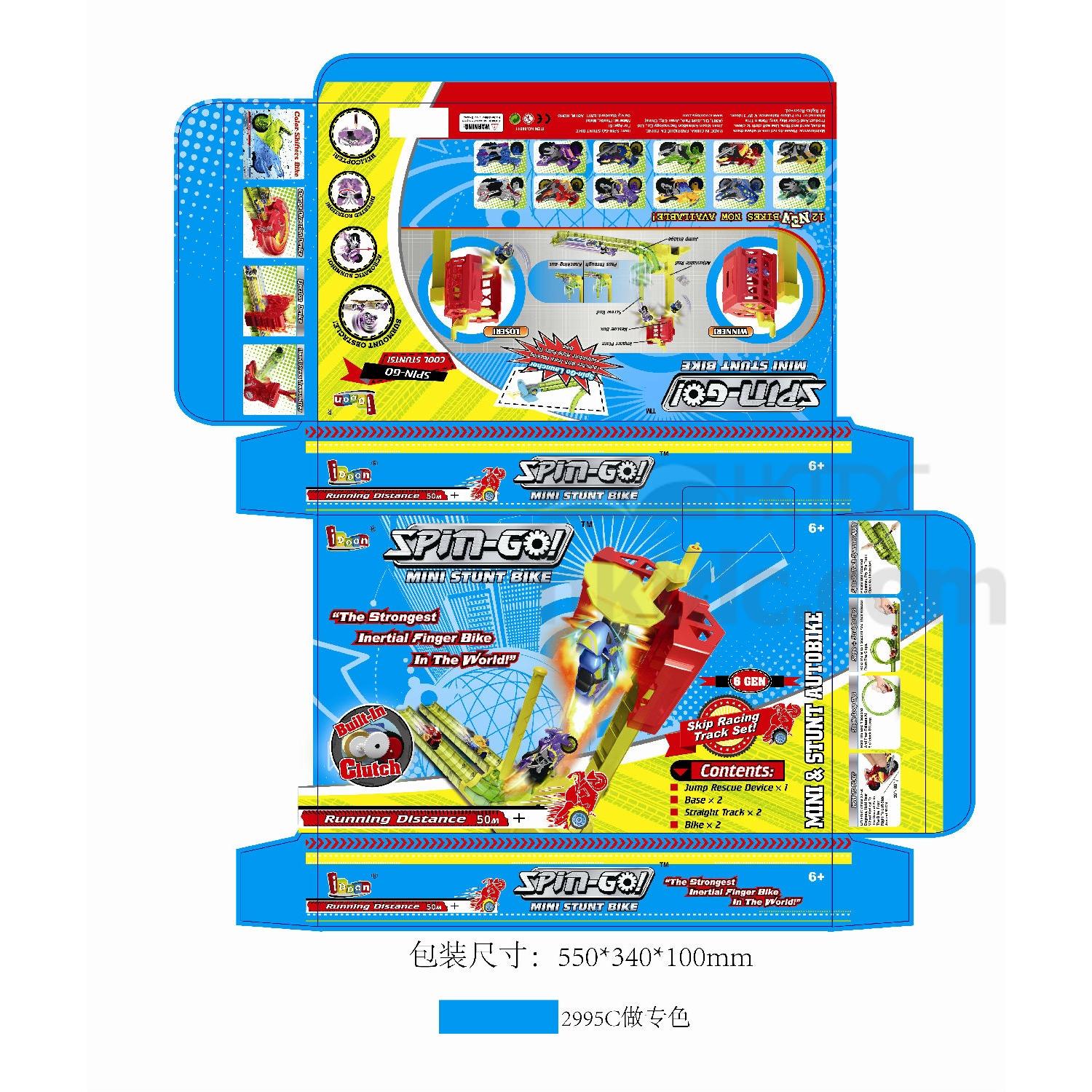 Spin-Go is friction bike without battery. Its running distance can reach 70 Meters! It has four stunt plays: surmount obstacle, acrobatic running, inverted rotation and helicopter on pen.