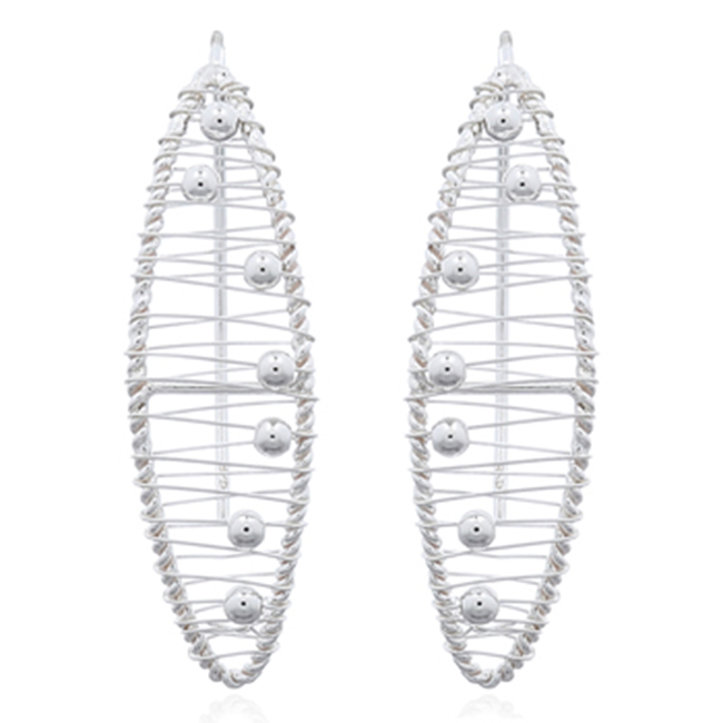 Spinning Balls In Wire Closed Up Marquise Silver Drop Earrings