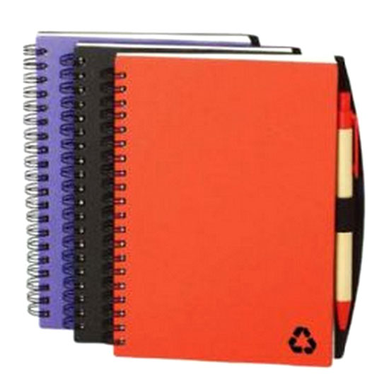 This is a spiral-bound notebook with a matching pen. It features a robust cover in a plain color. This notebook is a great accessory for your everyday tasks.