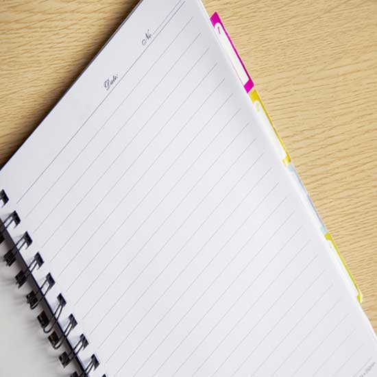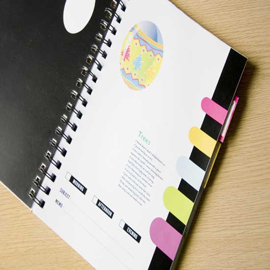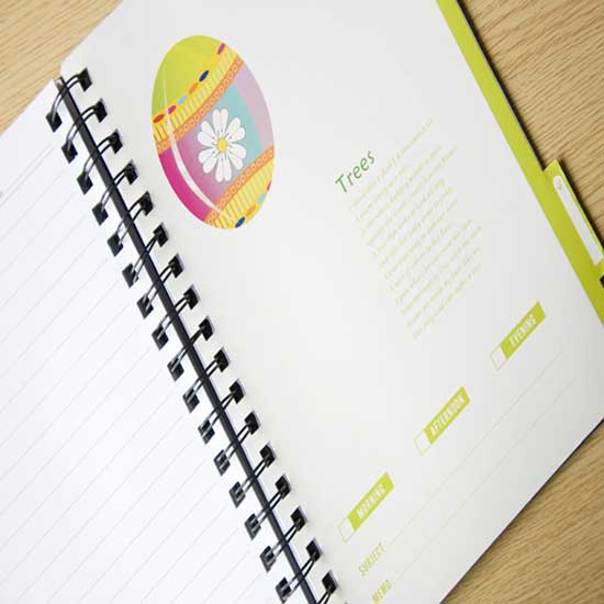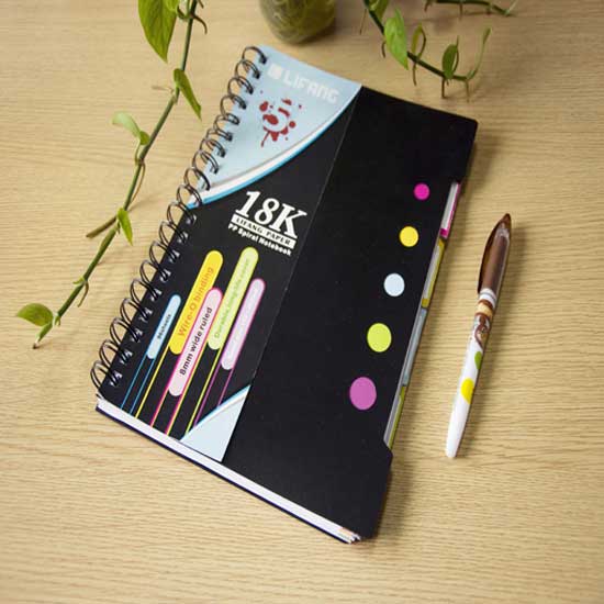 Displayed here is a notebook with a spiral-bound design. The spiral-bound pages can be torn out easily. It is an ideal choice for keeping your notes organized and accessible.