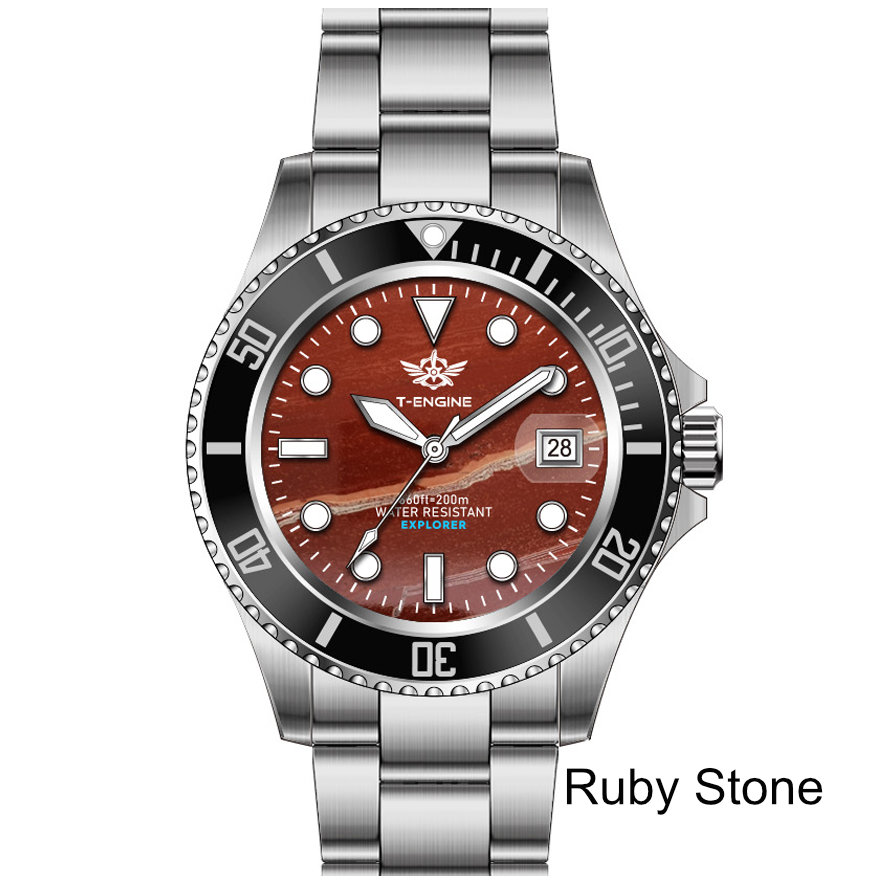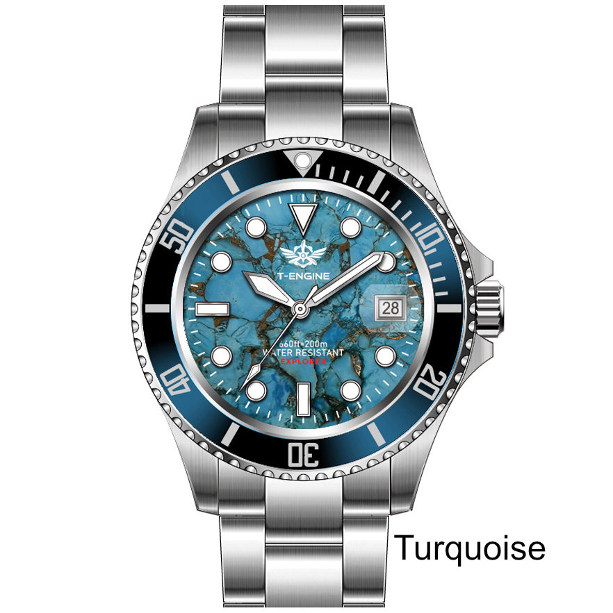 Dial - Natural stone dial, Applied indexes filled with luminous