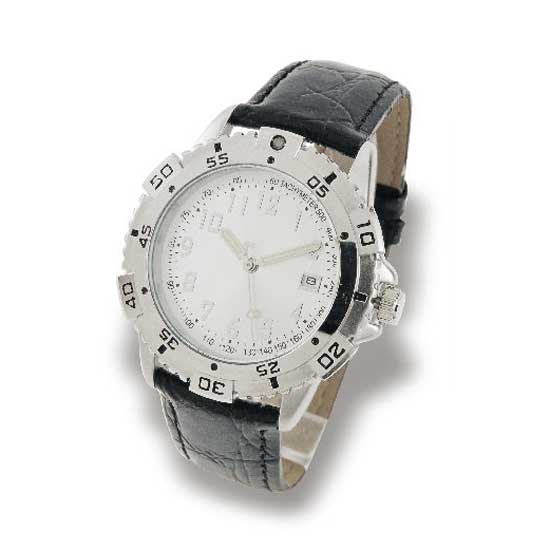 - Silver/black dial with raised indexes.