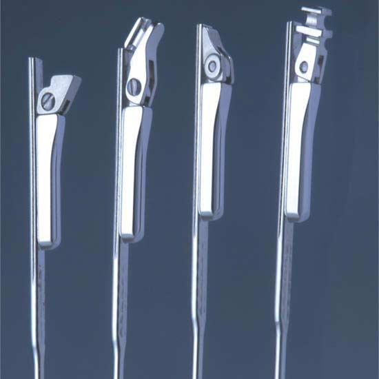 Featured is a collection of spring hinges for linking arms to optical glasses. The delicate design of the springs allows great flexibility and durability. The hinges are finely polished to offer a burnished touch.