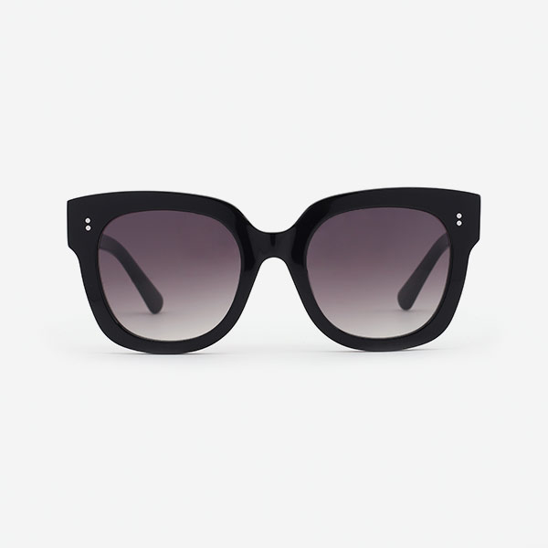 Oversize square acetate sunglasses with integrated nose pads, D-frame, simple line and classic, the perfect rivets on the end pieces and outside of templs for completing a look. Get carried away by our sunglasses selection and find a pair that speaks to you.Specially for wemen applying different occasions.