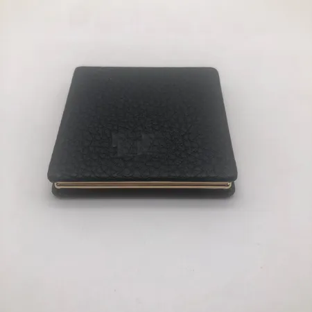 PRODUCT DETAILS: This handy mirror was designed for travel and with its slim design, it will easily slip into your back pocket or carry-on for mid-flight touch-ups. Provides a magnification mirror as well for easy to see. MATERIAL: Base Metal, and Leather, Glass Mirror.