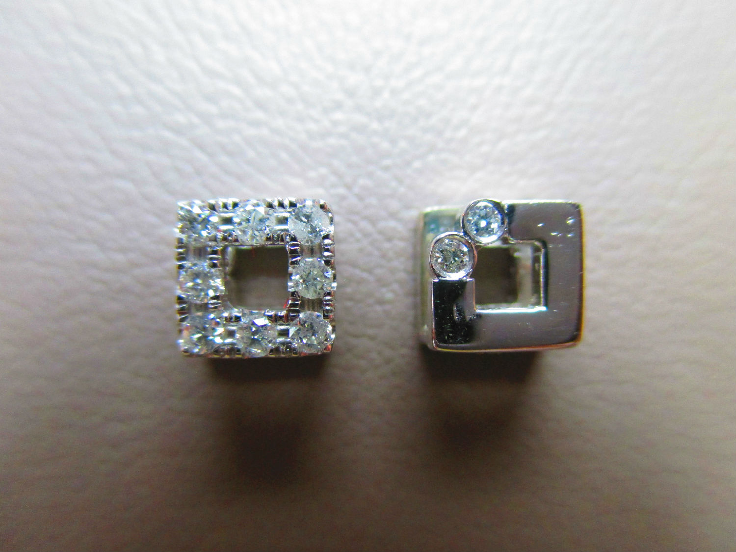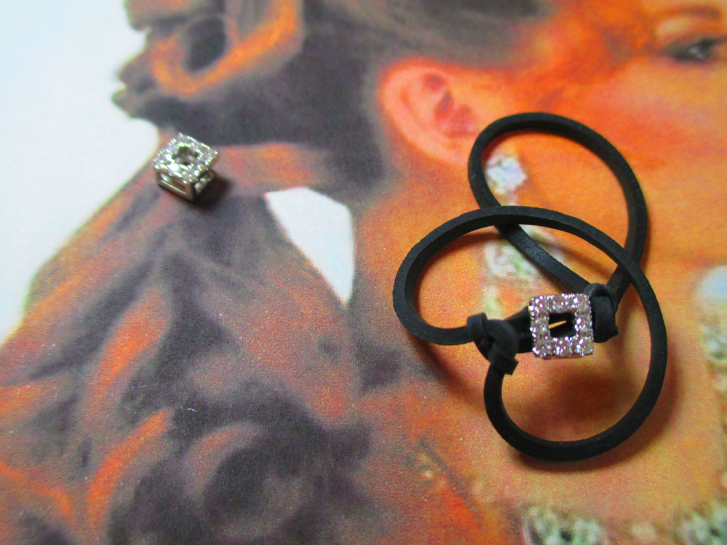 Add shimmering flair to your daily accessories with this double-sided pendant. Fashioned with a sleek square shape, this dainty piece boasts unparalleled glamor with diamonds set on both sides. Apart from being paired with necklace and bracelet, this pendant can also be strung on rubber bandage for added delicacy.