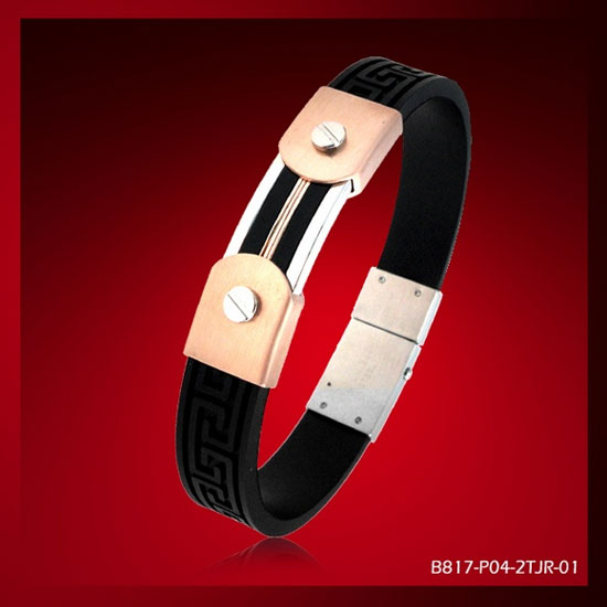 The bangle is constructed with stainless steel for lasting charm. Its ebony strap is accented with maze-like patterns. This piece looks good with many fashionable combinations.
